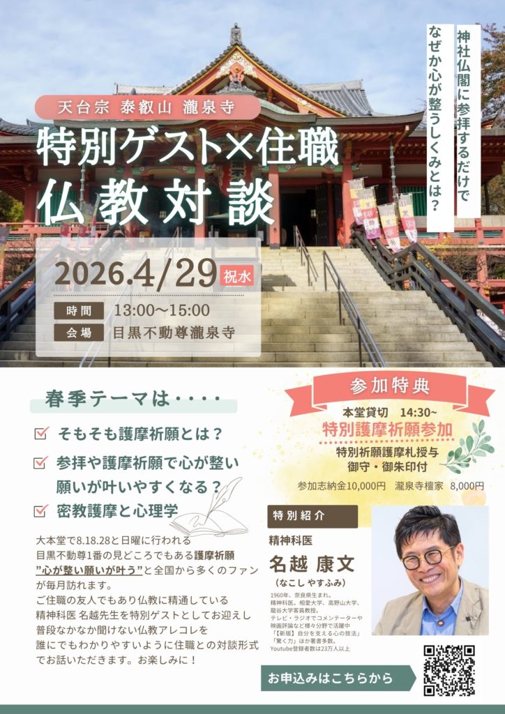 【目黒不動尊】4/29名越先生対談&護摩祈願参加申込みフォーム